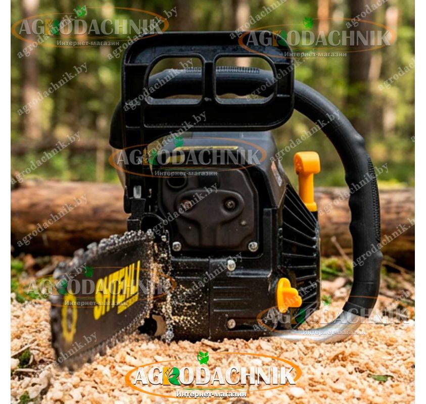 В основе пилы лежит доработанный 2-тактный двигатель. Хромированное покрытие цилиндра и усиленный коленвал значительно повышают износостойкость мотора по сравнению с обычными бюджетными пилами.