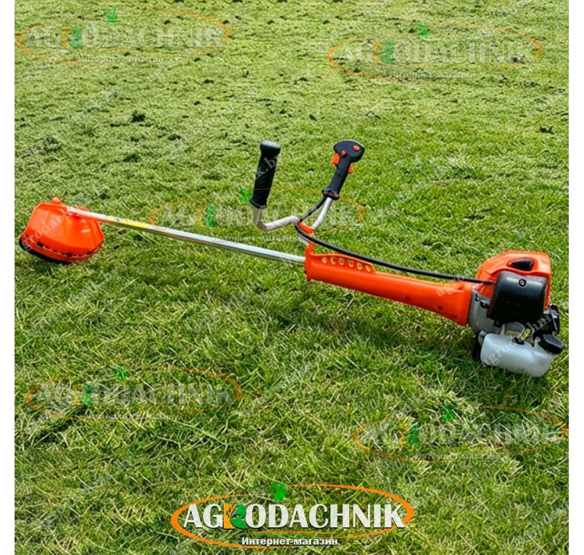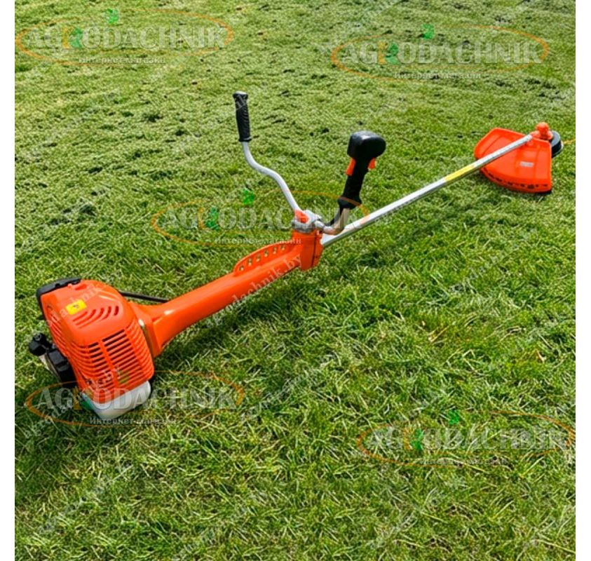 Редуктор изготовлен из качественного металла и рассчитан на высокие обороты. В комплекте с косой идет удобный двухплечевой ремень, который равномерно распределяет вес 7.8 кг по спине.