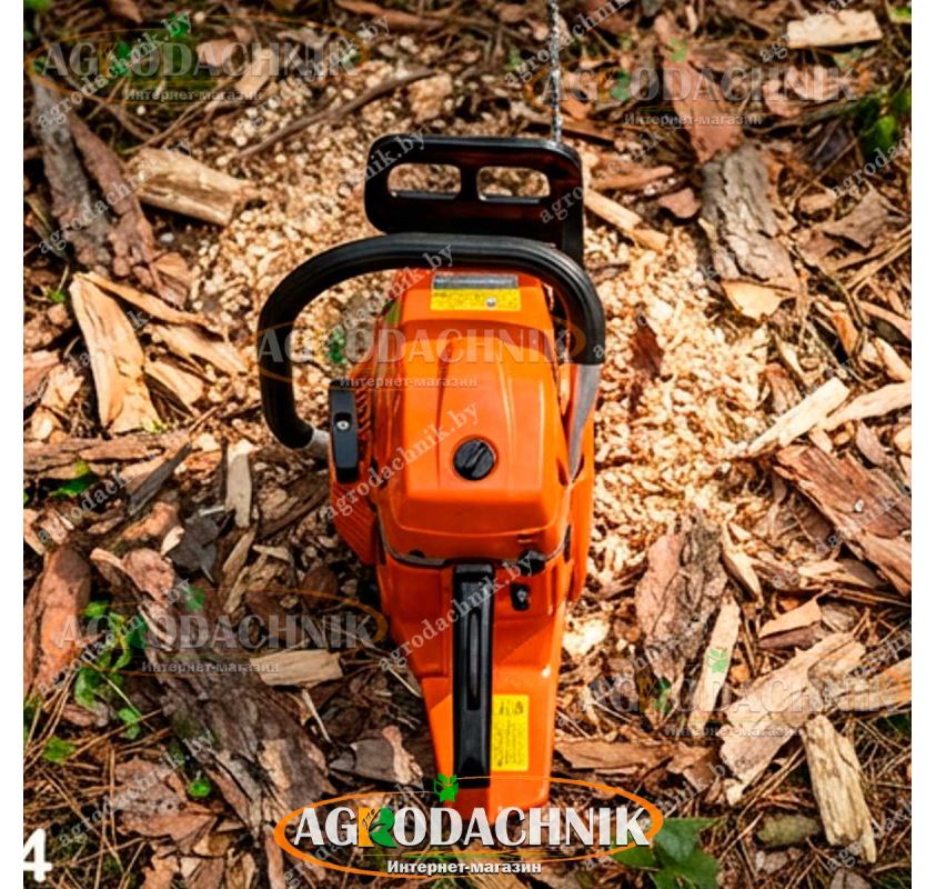 При обратном ударе (отскоке шины) щиток мгновенно останавливает вращение цепи за доли секунды, предотвращая травмы. Эффективная антивибрационная система на демпферах развязывает рукоятки от двигателя, снижая нагрузку на суставы при длительной работе.