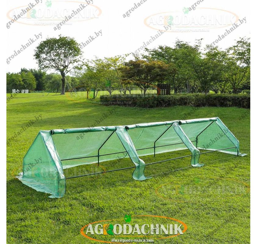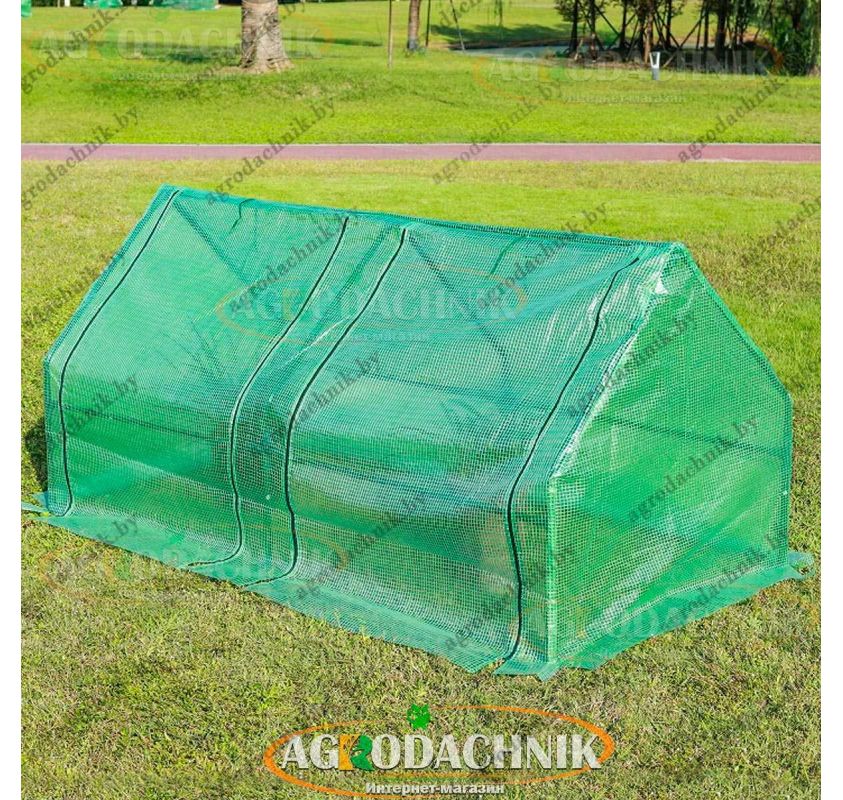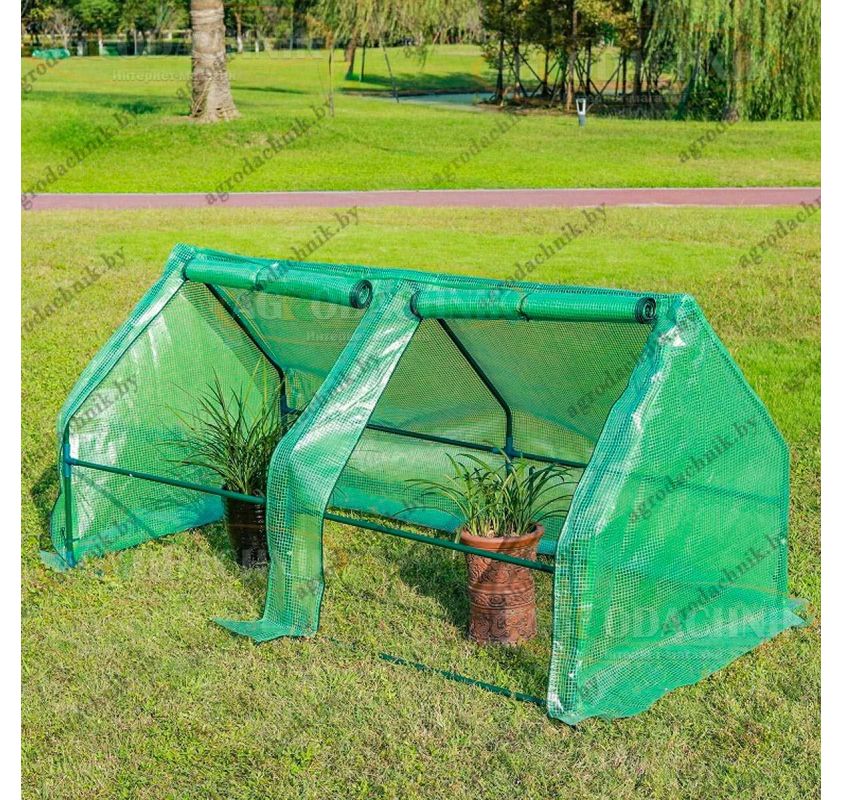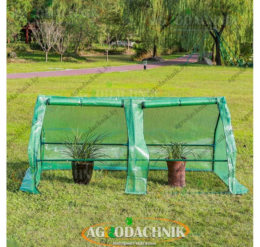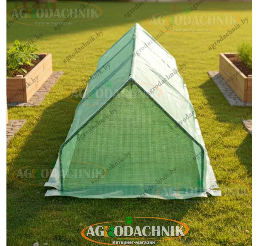 Обычно ставят вдоль грядки, рядом с теплыми грядками или у стен дома: парник быстро прогревает почву, сокращает риск возвратных заморозков и защищает всходы от ветра и дождя. Для балкона подходит короткая модель 1.8 м, а если вы планируете закрыть длинную грядку — берите 2.7 м или ставьте несколько модулей в ряд.